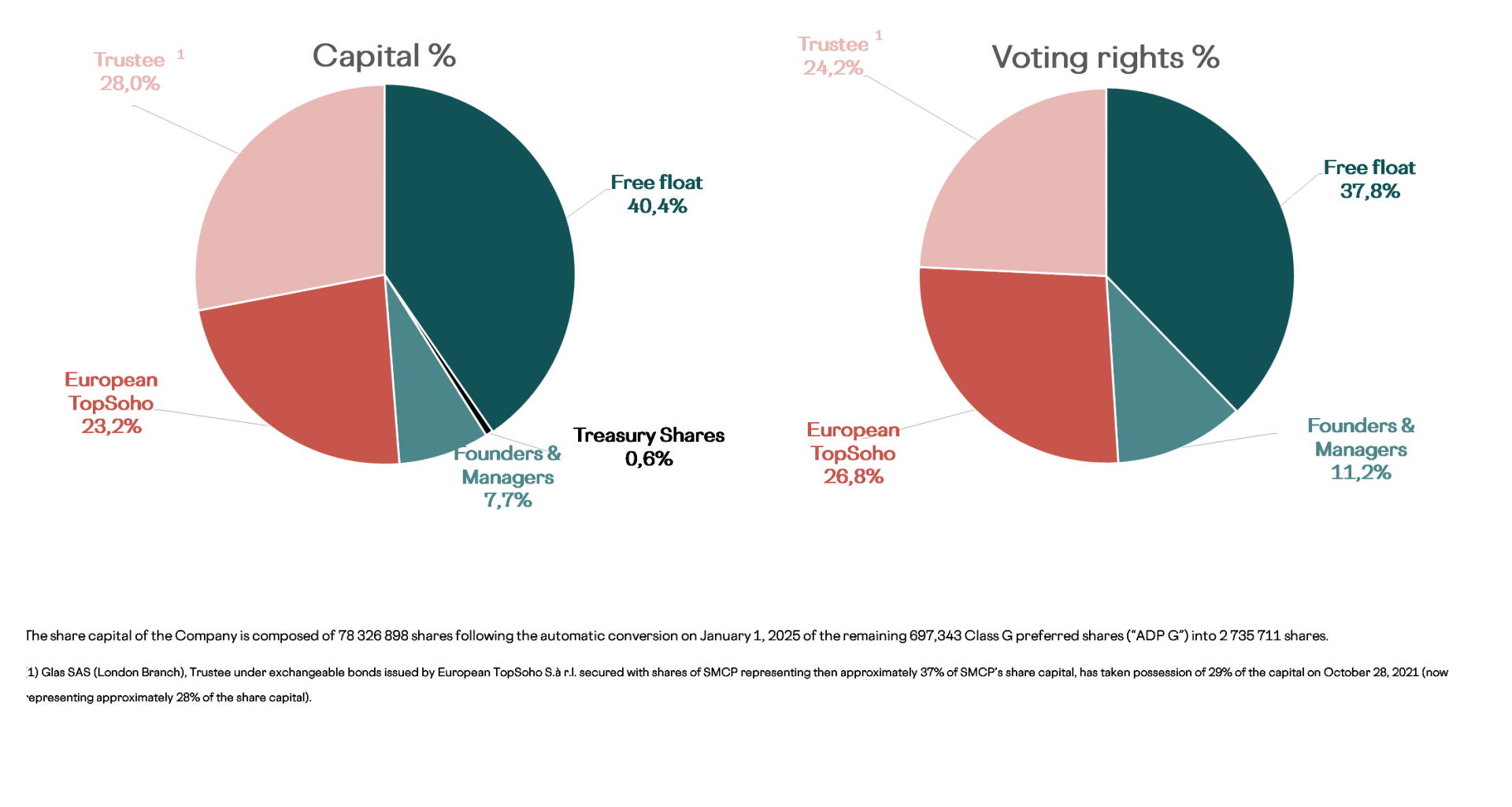 (1) Glas SAS (London Branch), Trustee under exchangeable bonds issued by European TopSoho S.à r.l. secured with shares of SMCP representing then approximately 37% of SMCP’s share capital, has taken possession of 29% of the capital on October 28, 2021 (now representing approximately 28% of the share capital).