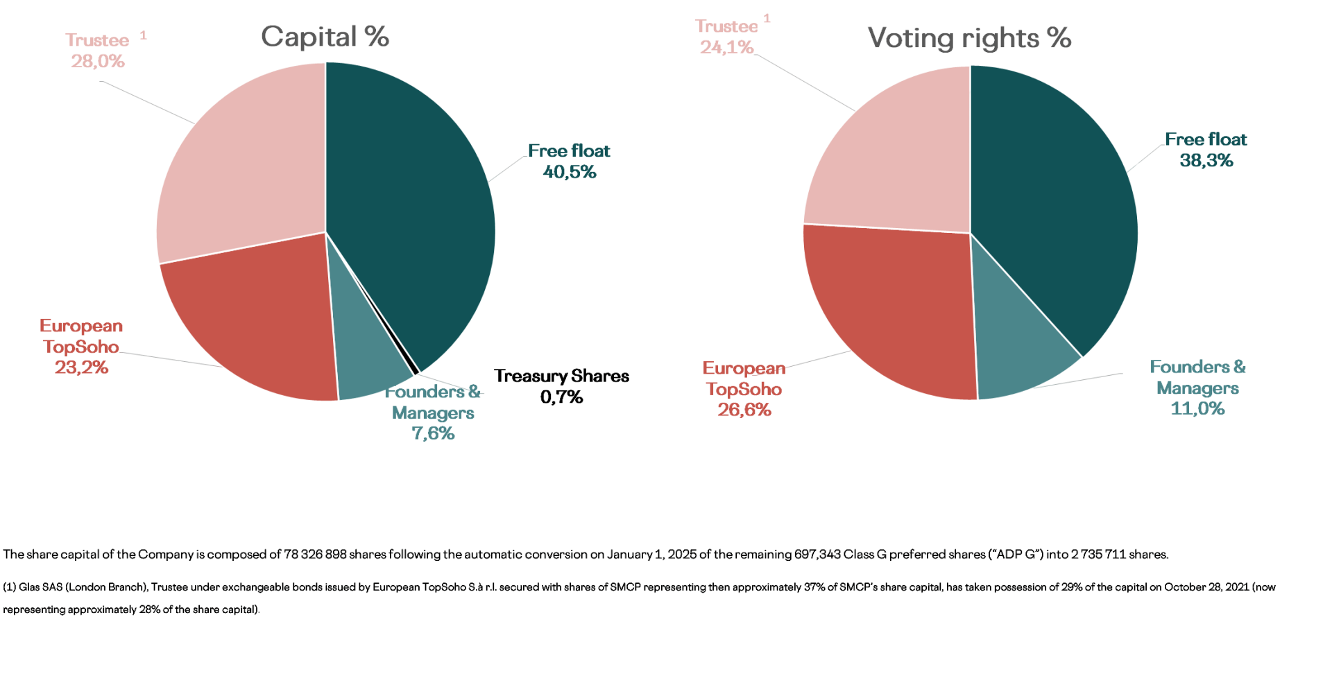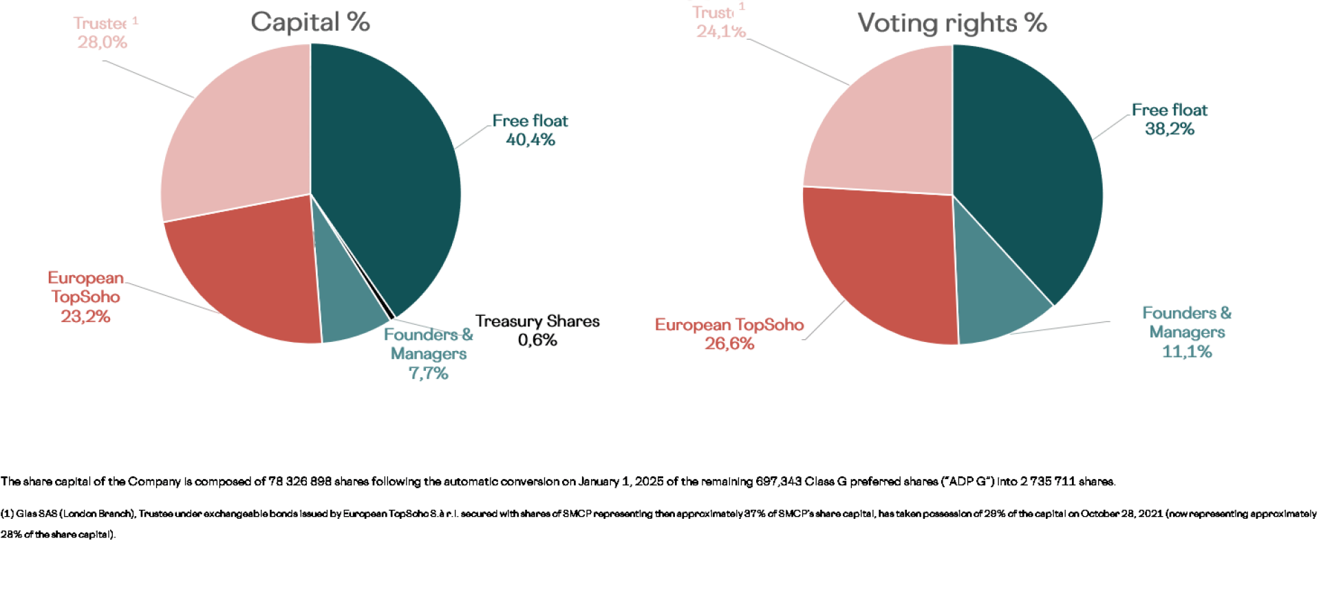 (1) Glas SAS (London Branch), Trustee under exchangeable bonds issued by European TopSoho S.à r.l. secured with shares of SMCP representing then approximately 37% of SMCP’s share capital, has taken possession of 29% of the capital on October 28, 2021 (now representing approximately 28% of the share capital).