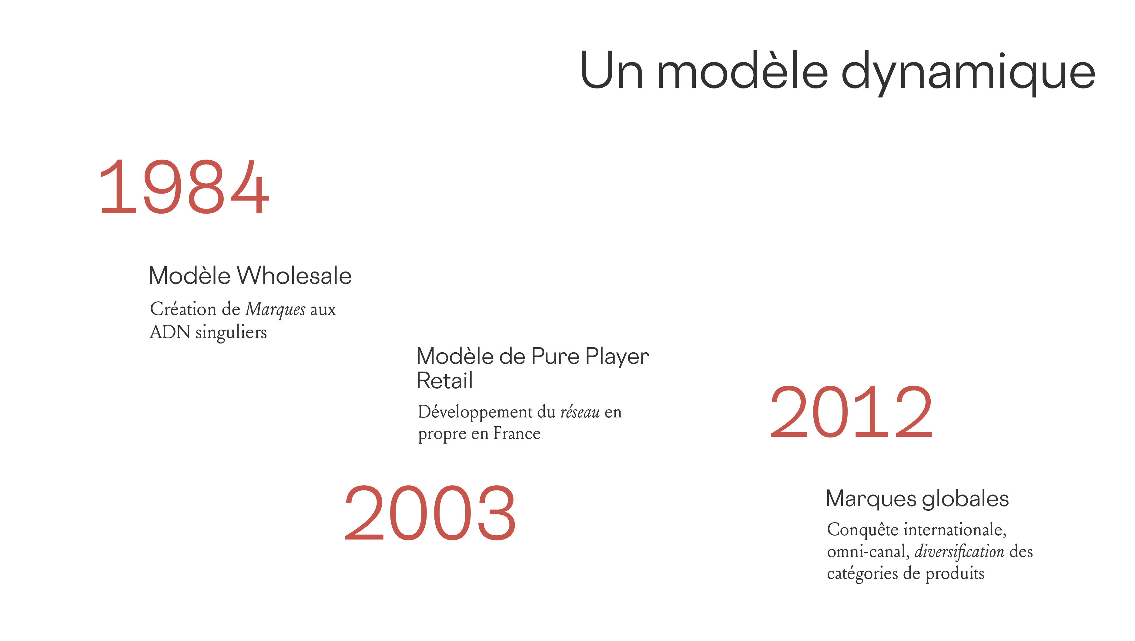 Les quatre Marques sont pilotées depuis leurs sièges parisiens et gèrent l’ensemble du cycle de vie du produit, de leur conception à la commercialisation. Elles sont consolidées depuis New York, Shanghai et Hong-Kong pour se développer, encore mieux & toujours plus.